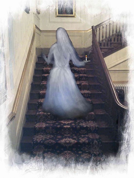 On another occasion a horse and carriage was heard in the courtyard at the back of the mansion. Then heavy footsteps were heard entering through the back door, and walking towards the kitchen, dragging what sounded like heavy chains.